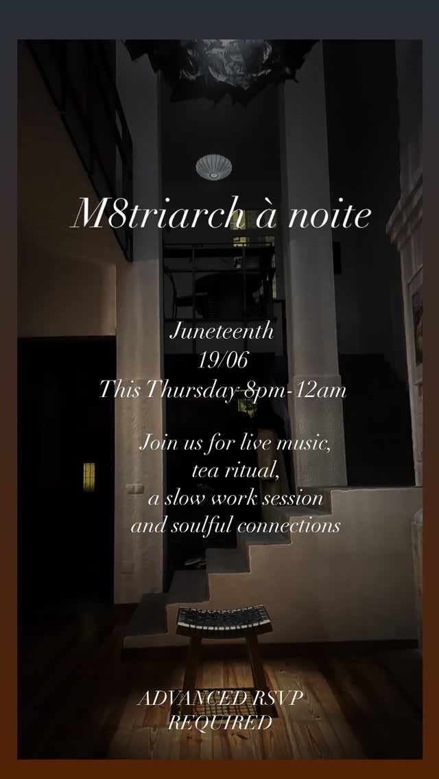 M8TRIARCH is a creative sanctuary that blurs the boundaries between living, exhibiting, and gathering. Rooted in Lisbon, we curate residencies, exhibitions, and intimate events that center underrepresented voices and nurture collective creation. Guided by the principles of curation, collaboration, and creation, M8TRIARCH is a house of softness, stories, and soul. A place where culture is lived, not just observed.